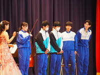 3年生希望者による指揮体験や、演奏に合わせた全校生徒による合唱、思い出ムービーの上映を実施しました。