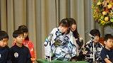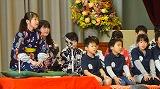 27日(木)3校時、「6年生ありがとう集会」を行いました。今までお世話になった6年生への感謝の気持ちを伝えるために、5年生中心に準備をしました。1年生はメダルを作り、2年生はくす玉作りのお手伝いをし、3・4年生は退場や、くす玉で使う紙ふぶきを作りました。各学年に手伝ってもらいながら、5年生は丹精込めてくす玉を完成させ、1~5年生が6年生へ書いたメッセージを色紙にまとめ、会の企画・運営を行いました。会では、こおりおにを楽しみ、6年生へメッセージとくす玉をプレゼントしました。その後、6年生からも、英語劇「桃太郎」やレジンのマグネットを贈っていただきました。思い出に残る会になりました。