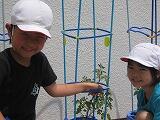 「あっ!実が成ってる!」「葉っぱが増えてる!」 とっても嬉しそう。 笑顔いっぱいです。