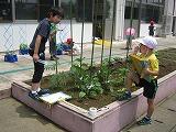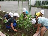 7月1日火曜日。 学級園の野菜が大きくなりました。