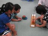 7月17日木曜日。 6月初旬から川島さんが学校に貸してくださっている、手作りの木のおもちゃで遊びました。