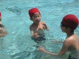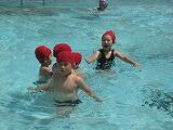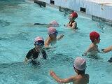 「いっしょにおよごう!」と、2年生の声。 2年生に続いて、1年生が泳ぎました。