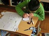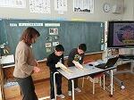 11月5日(月)、4・5・6年生は、新里和俊様にお越しいただき、木版画の指導をしていただきました。4年生は初めてということもあり、最初は戸惑う様子もありましたが、新里様に丁寧に教えていただき、彫刻刀の名前や彫り方を覚えたり、実際に自分で彫ったりすることができました。次回は26日なので、今日学んだことを活かしてがんばっていきます。