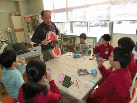 11月7日(水)に学校医の寺内先生による歯科指導がありました。「どうして虫歯ができるのか。何が虫歯にするのか。虫歯になりやすい場所は?歯磨きをしないで虫歯にならなくするための方法は?」と一つずつ、確認した後、正しい磨き方を詳しく教えていただきました。縦溝、横溝、内側の歯と歯ぐきの境、外側の歯と歯ぐきの境で、奥は、4か所×4、前歯は2か所×2で合計20か所を磨くことを磨き方とともに、ご指導いただきました。また、自分の歯に合わせた磨き方も教えていただきました。自分流になっていた歯磨きを見直す良い機会となりました。