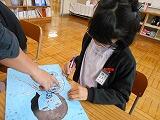 11月15日、新里さんによる版画指導がありました。いろいろな形の葉っぱを合わせて魚やたこなどを作りました。4人それぞれ個性的なすてきな作品に仕上がりました。