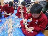 17日2・3校時、4・5年生はみすぎの郷デイサービス室で、3名の地域ボランティアの方々からしめ縄の作り方を教えていただきました。始めの、わらをなう工程で、子どもたちは苦戦していました。横で、すいすいとわらをなうボランティアの方々の慣れたすばやいワザに見とれていました。その後も、ボランティアの方々に優しく多大なる援助をしていただきながら、それぞれのしめ縄が出来上がりました。最後に子どもたちがはさみで飛び出したわらを切って整え、見事しめ縄を完成させ、喜んでいました。学校にもしめ縄を作っていただいたので、玄関に飾って新年を迎えたいと思います。見守っていただいたり、声を掛けてくださったり、一緒にしめ縄を作ってくださったりと、みすぎの郷利用者のみなさんとも交流ができました。場所を提供してくださったみすぎの郷様、指導してくださったボランティアの皆様、ありがとうございました。