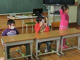 2年生が1年生にリズムを教えるなど、ほほえましい場面も見られました。