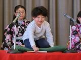 6年生・・・『水墨画に挑戦!』と、『親子でリレー書道』の2つを行いました。子ども達が選んだ文字を、親子で一画ずつ交代で書きます。長さやバランスなど相談しながら、協力して書き上げました。