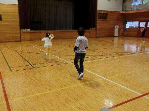 本校は二学年が一緒に体育の授業を行っています。今日は、1.2年生が体つくりの運動遊びで、大股で走ったり、腕の力だけで進んだりしました。低学年は、様々な動きの基礎を遊びながら身に付けていきます。
