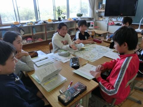 5年生・・・総合的な学習の時間『喜多笑米を作ろう!』では、おにぎりを作り、学習のまとめを発表しました。国語科『複合語』の授業では、活発に意見を発表していました。新聞の中から複合語を探すチーム戦では、友達と協力しながらたくさんの言葉を見つけることができました。
