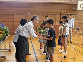7月5日表彰が行われました。今回は「歯と口の健康週間に関する作文、ポスター、標語展」の表彰でした。みんなとても上手に表彰状を受け取っていました。
