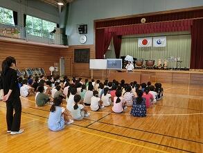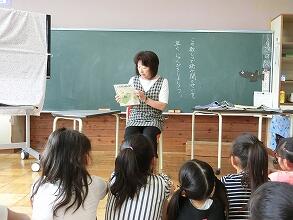 6月5日読み聞かせボランティアの方たちによる読み聞かせが行われました。1、2年生には「じろうまるのはなし」のかみしばい、3年生には「がんばれ!名犬チロリ」を読んでいただきました。子どもたちは、楽しそうに聞いていました。