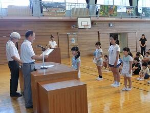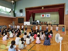7月20日終業式が行われました。1・3・5年生が1学期に頑張ったことの発表を行いました。全員が立派に発表することができました。校長先生からのお話もいただきました。みなさん、夏休みもけがなく、楽しく過ごしてください。