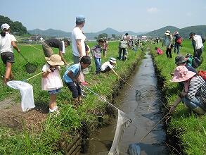 7月8日休日ボランティア(川遊び)が行われました。大きな鯉やなまずなどの魚や、いろんな生きものがいました。子どもたちは一生懸命に魚を追いかけていました。普段なかなか味わうことができない、とても楽しい時間となりました。ボランティアの方々には大変お世話になりました。