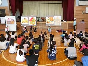 10月26日図書集会が行われました。図書委員会の子どもたちが「5ひきのこぶた」の劇を見せてくれました。自分たちで台詞を考えたり、絵を描いたり、時間のない中、一生懸命に練習をして、とても上手に発表してくれました。見ている子どもたちは、とても楽しそうに笑ったりしながら見ていました。