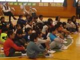 5月14日(月)に、今月の30日に行われる小小交流(スポーツ交流会)に向けて、町社会教育課・町体育指導員の方々が来校してくださり、タグラグビーの講習会が行われました。