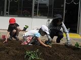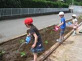 生活科の時間に教室の前の花壇に、野菜を植えました。