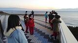 2日目の朝、太平洋から昇る日の出を見ました。水平線から昇ってくる太陽を見るのは初めてという子供もいるようです。今日もいい天気のようです。今日の活動も頑張るぞー!
