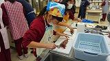 2日目最初の活動は、「干物作り」です。今日は、秋刀魚の干物を作ります。ボランティアの方々の説明をよく聞いて始めました。魚をさばくのも初めてです。何とか開くことができました。出来上がりが楽しみです。