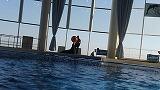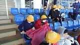 間もなくイルカショーが始まります。水がかからないようにビニルシートで防御!