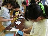 7月4日(水)図書委員が中心となって七夕集会を行いました。まず、図書委員による「たばなたものがたり」の読み聞かせを行いました。つぎに、提灯や織り姫やひこぼしなどの作り方を教える図書委員のテーブルを共遊班でまわり、七夕飾り作りをしました。最後に、作ったかざりや願い事の書いてある短冊を笹に飾り、「たなばたさま」の歌を歌いました。北小での最後の七夕集会。みんなで伝統行事に触れ、短冊に自分の願いを託しました。みんなの願いが叶いますように・・・。