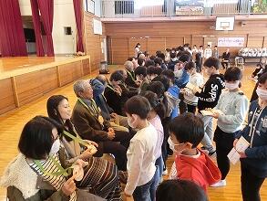2月20日、ボランティアさん感謝の会と授業参観(学級懇談会)を実施しました。この日は、日頃から様々な場面でお世話になっているボランティアさんを招いての、ふれあい給食から始まりました。各教室に分かれたボランティアさんが、子ども達と給食を共に食べました。その後は、体育館で6年児童の進行による、感謝の会を実施しました。ここでは、低学年・中学年・高学年からそれぞれプレゼント贈呈をしました。ボランティアのみなさんに、とても喜んでいただきました。これからも地域の皆様にお世話になりながら、よりよい教育環境作りに取り組んでいきたいと思います。今後も、どうぞよろしくお願いいたします。また、5校時には、授業参観を実施しました。今年度のまとめとして、子ども達の学習の様子をご覧いただきました。どの学年の子ども達も、一生懸命に授業に取り組んでいたと思います。また、授業後には懇談会を実施しました。多くの保護者のみなさんに参加していただき、今年度の振り返りを担任と共に確認していただきました。最後になりましたが、お忙しい中感謝の会に来ていただいたボランティアのみなさん、そして保護者の皆様、本当にありがとうございました。今年度も残すところあとわずかになりましたが、どうぞよろしくお願いいたします。