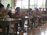 4月25日1年生歓迎集会がありました。「おおかみさんおおかみさん今何時」を楽しんだ後、「自己紹介ゲーム」で1年生と上級生が名刺を交換しました。早くお互いに名前を覚えてたくさん遊べるといいですね。最後に各学年からプレゼントのメダルをもらい、1年生は大喜びでした。