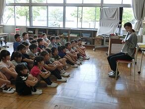 5月22日読み聞かせボランティアの方たちによる読み聞かせが行われました。1年生と2、3年生にわかれて、読んでいただきました。1年生は「ふたごのほし」でしたが、途中オルゴールをならしながら読んでいただき、とてもきれいな音に誘われるように興味深く聞き入っていました。