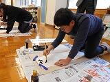 4月から中学生になる6年生、書初めで抱負を書き、立派に発表することができました。