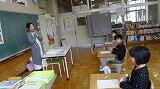 22日(水)昼休み、3・4・5年生は学校医の寺内先生にお越しいただき、歯科指導を受けました。子どもたちに虫歯を防ぐためにどんなことができるか確認した際には、「りんごを食べると、りんごが汚れとこすれて、汚れを落としてくれる」、「キシリトールガムを食べる」、「お菓子を食べ過ぎない」といった意見が出ていました。寺内先生からは、食べた後すぐに予防をすることの大切さも教えていただきました。その後歯の溝の磨き方を考え、ひとりひとり模型で試しました。それを踏まえて染め出しを行い、いつも給食後の歯磨きで使っている「歯磨き体操」の順番を確かめながら、自分の歯を磨きました。磨き残しがないか、よく鏡を見ながら取り組んでいました。楽しく分かりやすく、健康な歯を守る方法を教えていただきました。