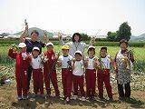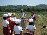 5月17日(金)、川島和子さん宅の畑にて、3・4年生7名が玉ねぎ収穫の体験をさせていただきました。川島さんから、玉ねぎの抜き方を教えていただいた後、さっそくチャレンジ。「わあ、大きい!」「これ細長~い!」と、子どもたちはうれしそうに収穫をしていました。帰りには、全校児童と先生分の玉ねぎをおみやげにいただきました。川島さん、本当にありがとうございました。