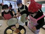 7日、クラフトクラブでパンケーキを作りました。二つの班に分かれて、協力して調理をしました。卵を上手に割っては喜び、パンケーキを裏返すのに成功しては喜び、みんなで楽しそうに活動していました。今回は二年生のクラブ見学もあったので、二年生も一緒にパンケーキの飾り付けをして、それぞれ個性的な一皿が完成しました。最後はおいしくいただきました~。