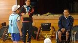18日、3~6年生は社会福祉協議会の皆様と北小出身で講師の永島幸介様をお招きして、車いすバスケットボール体験をしました。教えていただきながら、競技用車いすの動かし方やパス・ドリブルの仕方などの基本練習をした後、試合をしました。車いすをすばやく進めたり、進みながらドリブルをしたり、相手が取りやすいパスをしたり、シュートをしたり、普段の感覚との違いに気付きました。子どもたちは楽しみながら体験をすることができました。