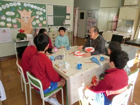次の週の21日(木)には、クリスマス集会を行いました。カードにメッセージを交換し、自分だけのクリスマスカードができました。みんなで「ジングルベル」を歌い、クリスマスムードを盛り上げました。最後は、学校長からオカリナの演奏をプレゼントしていただきました。