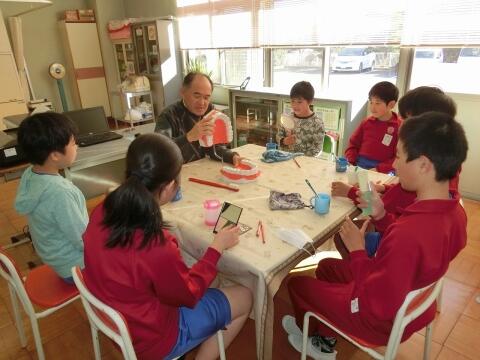 新年早々、寺内先生に指導していただきました。甘い食べ物でも虫歯になりやすい糖、虫歯になりにくい糖との違い、食べる順番で虫歯になりにくくなるなど教えていただいた後、丁寧に歯磨き指導をしていただきました。気持ちを新たに、歯を大切にしようと考えた子供たちです。