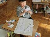 2年生はキウイ収穫、3年生は一輪車の版画に挑戦しています。体の関節の動きから、顔のパーツなど細かい部分まで一生懸命作り、いよいよ版画を刷るところまできました。子どもたちは刷ったときにどんな作品になるのか、わくわくしているようでした。