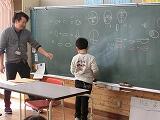 26日、4・5・6年生は新里様にお越しいただいて2回目の版画指導を受けました。子どもたちは、御指導をいただきながら線彫りを終え、顔や手の彫り方を教えていただきました。平らなところはまっすぐな線で、丸みのあるところはカーブさせた線で彫ることを、分かりやすく教えていただきました。子どもたちは、鉛筆で彫り方を書き加えて、早速彫り進めていました。