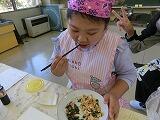 味噌汁は、それぞれの班で、入れたい具材を三種類選び、調理しました。味噌汁も自分たちが作った味噌汁と他の班が作った味噌汁を食べ比べして、具材との味の違いを楽しんでいました。