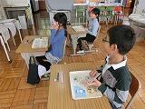 2日、4年生で食の指導がありました。岩舟中学校栄養教諭の大竹先生から、「バランスよく食べよう」というテーマで教えていただきました。食品には、エネルギーのもとになる食品、体を作るもとになる食品、体の調子を整える食品があり、食事では主食・主菜・副菜をそろえ、量を考えて食べることが大切だということが分かりました。