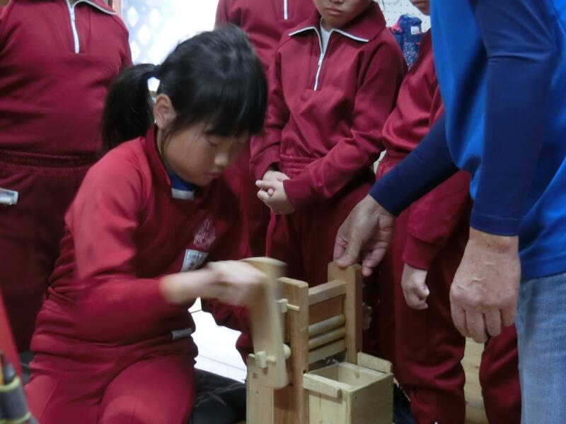 6年生は現在、電動糸のこぎりを使って、組み木パズルを製作しています。さすが電動糸のこぎりを使うのも2年目となるとみんな扱いが上手です。今回のパズルは、かきつぎ同士をつなぎ合わせて自由な形を作るもので、電動糸のこぎりを使って小さな切り込みを入れることに苦戦はしていましたが、全員集中して作業を行いました。それぞれ素敵な作品ができ上がりました。