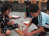 7月17日木曜日。 6月初旬から川島さんが学校に貸してくださっている、手作りの木のおもちゃで遊びました。
