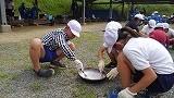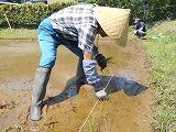 27日(月)、地域ボランティアの川島様の御指導の下、全校児童で田植えをしました。初めてを田植えをする1年生には、上級生が教えながら、全員で苗を植えました。また、田植えの後、雑草防除と肥料を兼ねた米ぬかを5年生がまきました。みんなで頑張って植えた苗から、今年もたくさんの喜多笑米がとれるでしょうか…!楽しみです。