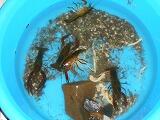 13・14日の生活科の時間に、下校途中いつも見ていたザリガニを釣りに学校長と行きました。釣り糸にさきいかを付けてザリガニが食いつくのをじっと待って、サッと引き上げたり、釣った瞬間にあみですくい取ったり、逃げられたり…一喜一憂しながら楽しみました。ザリガニの世話をしながら成長を見たり、命について考えたりしていきたいです。