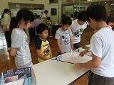 図工の時間、長ーい紙をつくって、「スパイダーアドベンチャー」を作りました。チケットを配り、「10個のシールを見つけながら、時間内に通りぬけてください。」と全校生にチャレンジしてもらいました。学校公開日には、お母さん方や小さい子たちもチャレンジしてくれました。子どもたちは、みんなにやってもらうことができ、またお店番も楽しむこともでき、大満足でした。
