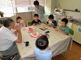 10月3日(水)学校歯科医の寺内先生に歯科指導をしていただきました。まず、歯に合わせてハブラシのあて方を教えていただきました。次に、染め出しを行い、磨き残しを鏡で確認しました。最後に、6月に教えていただいた歯の磨き方を思い出し、はぶらしをみぞにあてながらていねいに磨きました。