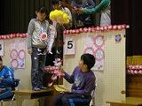 3月7日(月)に4・5年生が中心となって、企画・z準備してきた「6年生ありがとう集会」が行われました。シャボン玉の中の入場・ゲーム(フルーツバスケット)・くす玉・歌と6年生との交流を楽しみました。また、6年生からは英語劇「ももたろう」改め「ももこ」の発表がありました。4・5年生のがんばりで、立派な集会になりました。