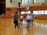 今年も、日本一輪車協会インストラクターの林田さやかさんをお招きして、一輪車の講習会を開催しました。初めに1年間の成長を見ていただき、さらによくなるためのアドバイスをいただきました。次に、講師の田上絢子さんと一緒に8の字やスラロームの練習をしました。その後世界大会に出場される田上さんの演技を見せていただきました。すばらしい演技に感動しました!最後に、今年の運動会のためのフォーメーションを教えていただき、有意義な時間となりました。1年生もひたすら乗る練習をがんばり、自信が付きました。運動会をお楽しみに!!