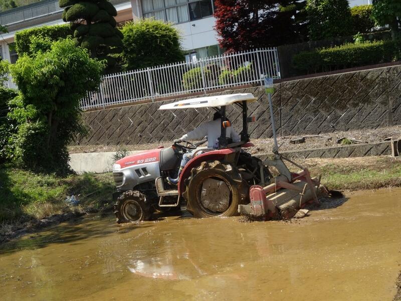 巧みなトラクターのドライブテクニックで、まんべんなく田を耕してくださった川島様に、子どもたちは、拍手!その後、代かきの仕方を教えていただき、いざ!挑戦!!最初は、ならし棒の扱いに戸惑っていた子どもたちでしたが、時間が経つにつれ、押したり引いたりして、上手に田んぼをならすことができるようになりました。