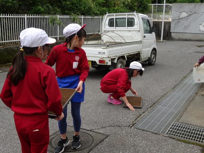 5月8日(火)に地域ボランティアの川島様のご指導のもと、「もみまき」をしました。今年の5年生は、「わたしたちの生活と米」というテーマで、総合学習を進めていきます。まずは、「喜多笑米づくり」から。毎年全校児童で行う「田植え」もリーダーとなってがんばります。