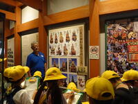 まずは山車会館で山車についての説明を聞きました。今年度は11月の秋まつりで山車を引く予定です。